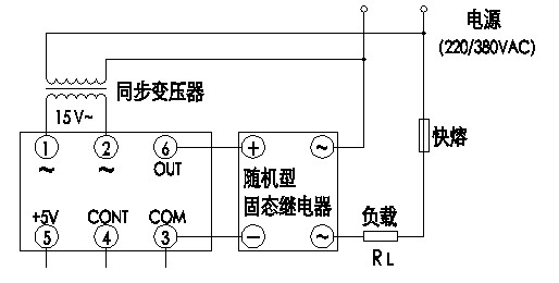 4、移相觸發(fā)器與隨機(jī)型固態(tài)繼電器組成的應(yīng)用電路圖