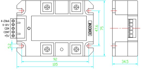 3、模塊各功能端的控制特性均為正特性,即控制電壓越高,模塊強(qiáng)電主回路輸出電壓越高。